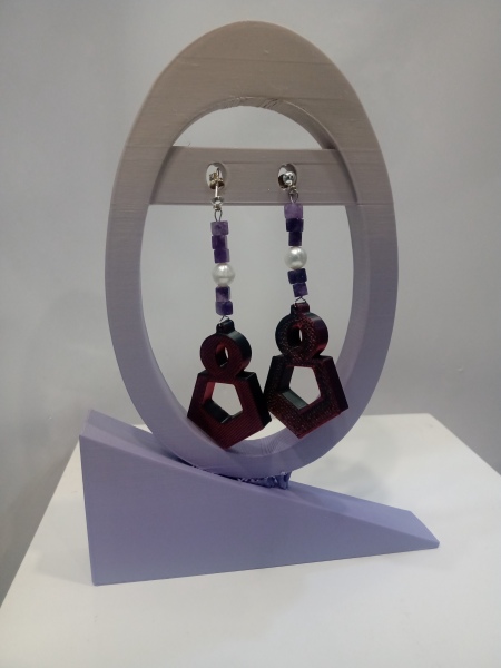 Diseño en Impresión 3D, piedra natural Jade lila, perla de río, pasante en Plata Ley 925
